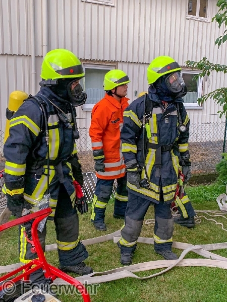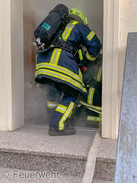 Eine erste Erkundung durch den Einsatzleiter ergab, dass der gemeldete Sachverhalt zutraf und umgehend wurden die ersten Trupps unter schwerem Atemschutz zur Brandbekämpfung eingesetzt.